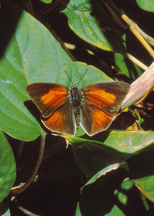 シジミチョウ科は名前の通りシジミ(蜆)のように小さなものが多いが、この蝶はその中でも大型の仲間である。