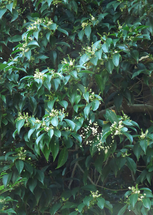 この樹を見つけから3年目、今年こそと今度は8月9日に訪れたがまだ固い蕾で、蕾の様子からみて10日後位と思ったが、ひよっとしてと思いその1週間後に訪れた。