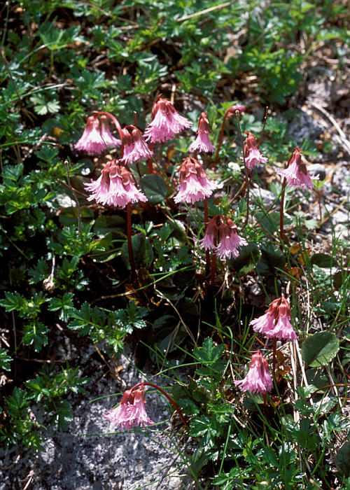 イワカガミとは区別が難しい点もあるが、高山帯の岩場や雪田周りに生え、高山で矮小化した品種とされている。
