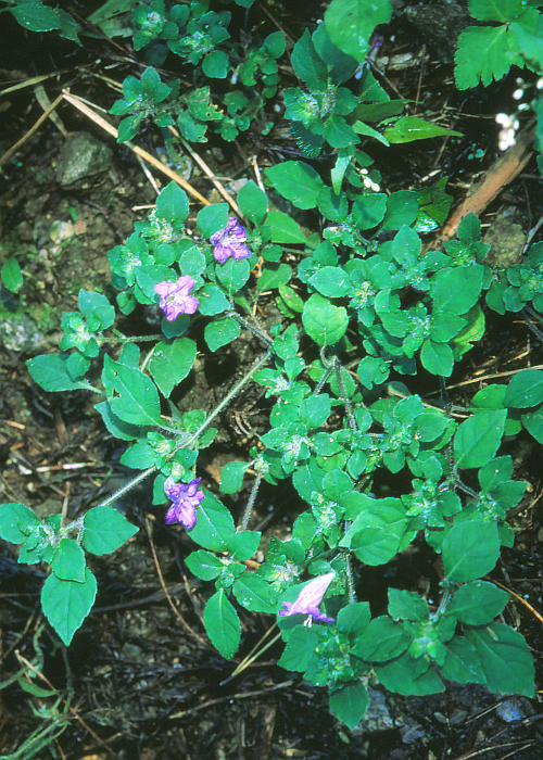 茎は立ち上がらずよく分枝し、匍匐して伸び、葉とともに著しい開出毛があり、節から根を出しマット状に広がる。