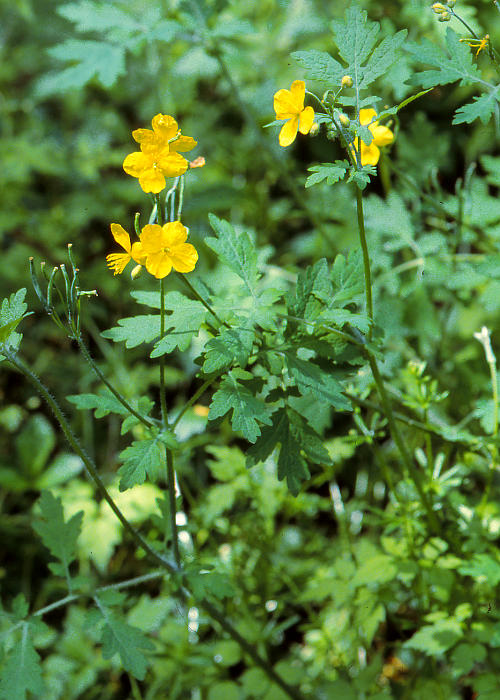 茎は柔らかく、中空で分枝し、全体に多細胞の縮れた毛が多いので白っぽく見える。切ると橙黄色の液が出る。