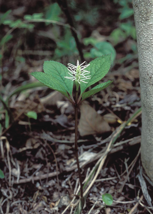 花期もやや遅く、広島県の生育地ではヒトリシズカが終わりかけている頃、やっと咲き始めていた。