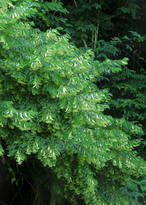 苞の形をヘラ(箆)に見立てて和名が付けられているが、この苞が果時には花序ともに枝を離れ、翼となって種子を散布するという面白い花で、ぜひ見てみたいものだと思っていた。