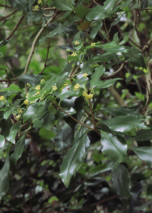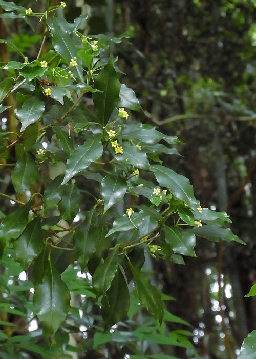 海岸に多いトベラの仲間ということであるが、ここは内陸部であまりその感じはしなかった。帰って調べると果実の様子はそっくりで、同属であることが納得できた。