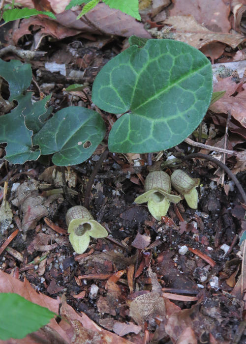カンアオイ類の中では花期が遅い種で、普通は5月中ごろに咲き始めるが、この年は暖かい日が続いたため花期が例年より1週間〜10日早まっていてちょうどいい咲き具合だった。