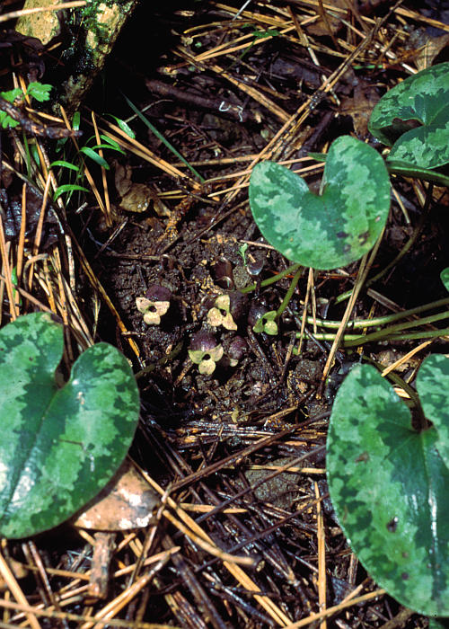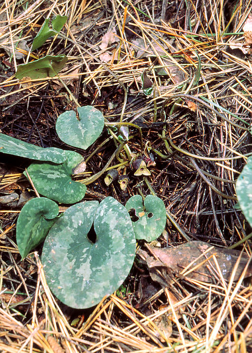 ヒメカンアオイ系の種類で、花は夏から秋に咲き、春先でも花が残っている。