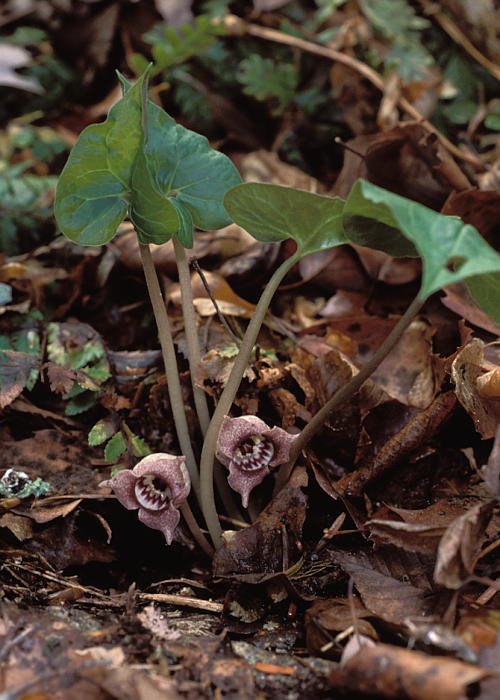 注.APG分類ではカンアオイ属、学名(Asarum tohokuense)
