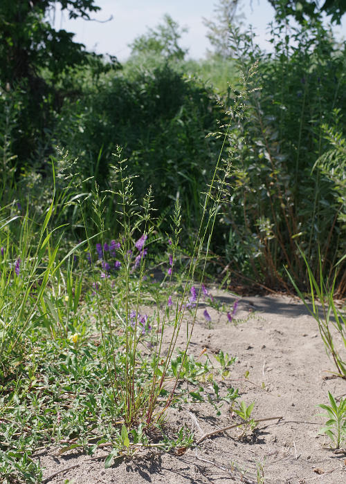 明治時代の初めにケンタッキー・ブル−グラスの名で導入された牧草で、戦後に緑化や砂防用に使われたため、広く野生化した。