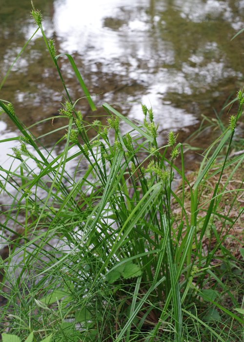 図鑑では平地や丘陵地の林縁に生えるという記述もあり、斜面の下部は水が染み出していてやはり湿地に生えるスゲというのが納得できた。