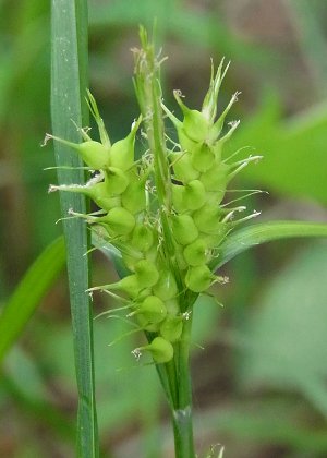 果胞は卵形だが先に向かって段々狭まっていくのが特徴で、よく似たアワボスゲとの違いになっている。