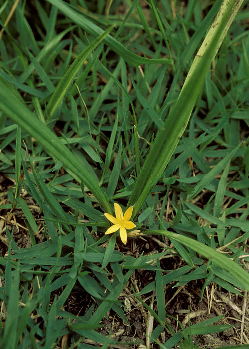 すると、葉の根元にくっつくように黄色の花が咲いている。コキンバイザサかと思って撮影した。ずっと疑っていなかったが、ある時フィルムをチェックするとこの花だった。その時は長い花柄があると思っていたのだが。