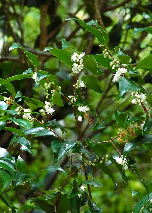 この科の花は春頃に咲くものが多く、アオバナハイノキは淡紫色の美しい花を見せてくれるが、秋から冬にかけて咲く種類もいくつかある。