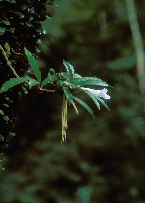 大木の樹幹に着生するこの花、自生地ではそれほど少なくない花であるが、フィルムカメラの絵になるような距離で見つけることは難しい。