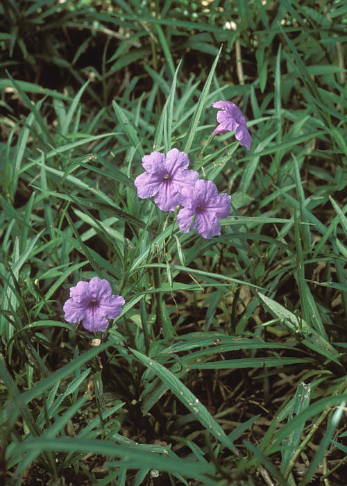 沖縄の道路端や荒地で、細長い葉と少しシワの多い淡紫色の大きなこの花をよく見かける。