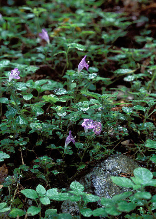 茎は立ち上がらずよく分枝し、匍匐して伸び、葉とともに著しい開出毛があり、節から根を出しマット状に広がる。