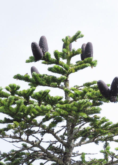 枝の上に黒紫色の果実(球果)を林立させている姿は絵になり、植物が目的でない登山者もカメラを向けていた。