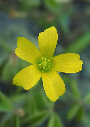 花は3〜10cmの長い花茎の先につく2〜6個の小花柄につき、小花柄は長さ1〜2mm。花弁は黄色で5個、楕円形で長さ7〜11mm。萼片は5個、狭披針形で、長さ3〜4mm。