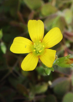カタバミの品種で、通勤途上の道端でもよく見かけるごく普通の花である。