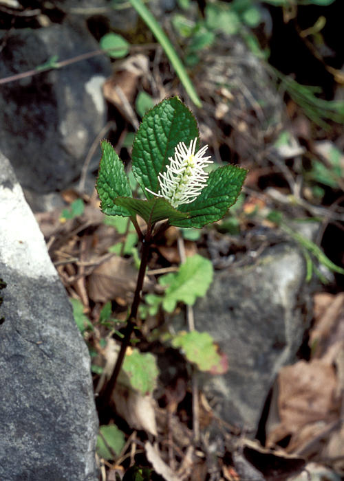 花期もやや遅く、広島県の生育地ではヒトリシズカが終わりかけている頃、やっと咲き始めていた。