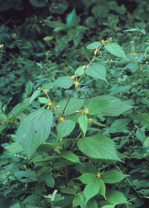上・全体1 2005年9月10日 静岡県静岡市 中上・全体2 2008年10月5日 鹿児島県屋久島 (上、中上は拡大写真あり、写真をクリック) 中下・花 2005年9月10日 静岡県静岡市 左下・果実(乾果) 2008年10月5日 鹿児島県屋久島 右下・葉 同 上