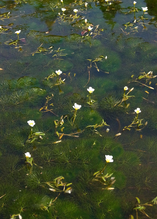 遠くから白い花が見え期待して近づくと、何と水面一杯に広がっていたのはこの花だった。