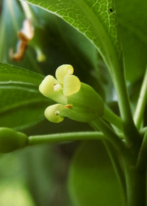 海岸に多いトベラの仲間ということであるが、ここは内陸部であまりその感じはしなかった。帰って調べると果実の様子はそっくりで、同属であることが納得できた。