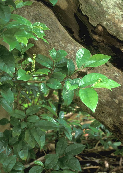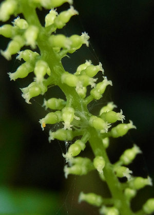 雌雄異株で、花序は葉腋や枝先につき、雄花は円錐状、雌花は総状になって長さ3〜5cm。花は径1mm以下と小さく、花弁はなくて萼片が4裂し、広卵形で長さ約0.5mm、平開または反り返る。雄花は長さ1〜1.5mmの柄があり、有毛。雌花は3〜5個の萼裂片があり、先は直立する。