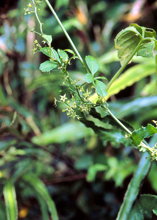 上・全体 2006年8月26日 長野県白馬山麓 中上・全体2 2005年9月10日 静岡県静岡市 (上、中上は拡大写真あり、写真をクリック) 中中・花序 同 上 中下・花 2017年8月27日 東京都八王子市 左下・果実(液果) 2016年10月31日 東京都日野市 右上・葉 2017年8月27日 東京都八王子市 右下・茎 同 上