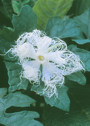 葉は5裂するモミジカラスウリによく似ているが、同じ日に出会ったモミジカラスウリと比べると、本種ほうが葉の光沢があると感じたが、詳細を書いた文献が見当たらず違いははっきりしない。