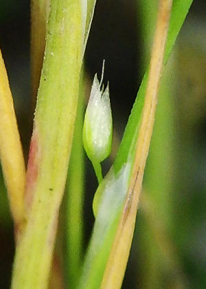 葉は線形、葉鞘とともにざらつく。葉舌は高さ3〜4mm。
