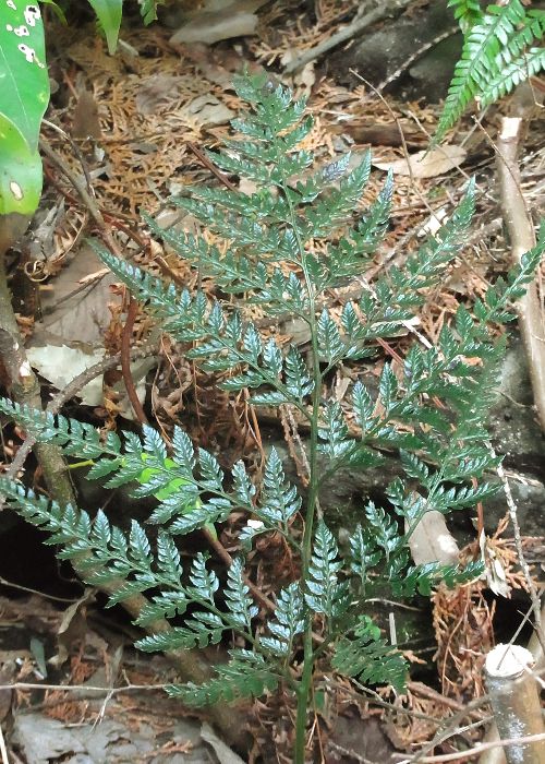 カナワラビの仲間は似たものが多く同定に苦労するが、この種はホソバカナワラビによく似ているが、頂羽片というまとまりがなというのが特徴の1つとなっている。