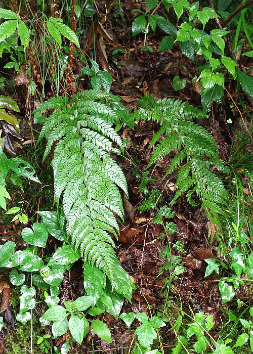 草丈(59-)65〜75(-90)cmの常緑性シダ。