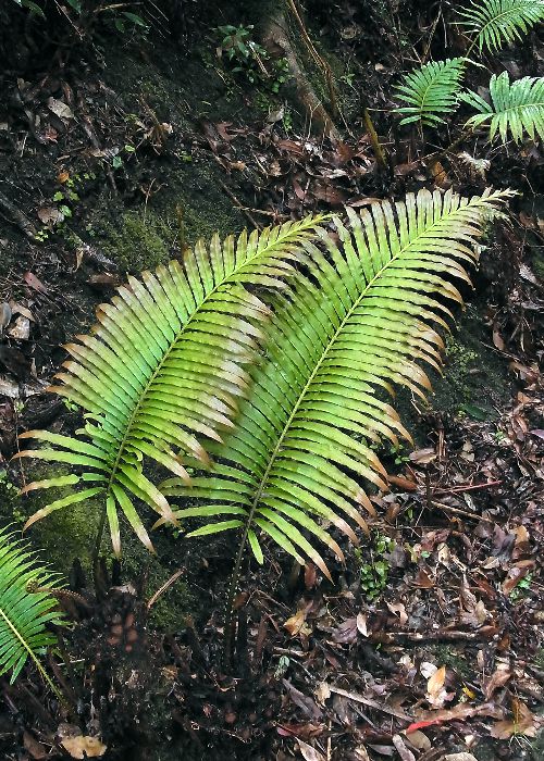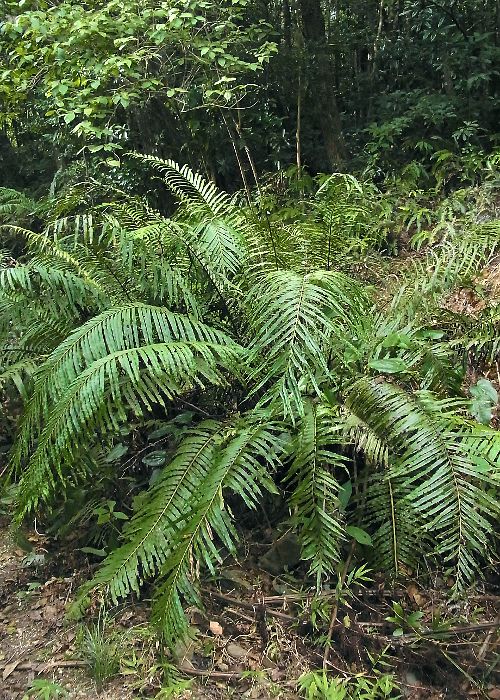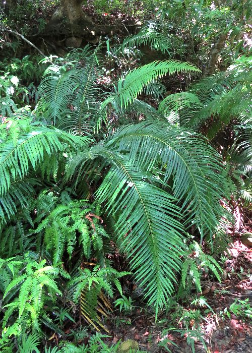 沖縄では林道の法面や登山道際に普通に見られるシダで、若い葉とともにイメージするとすぐに覚えられる。