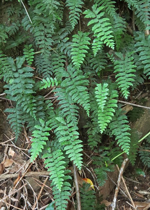 上・全体1 2014年3月23日 沖縄県与那国島 中上・全体2 2013年12月16日 同 上 中中・全体3(群落) 2014年3月23日 同 上 (上、中上、中中は拡大写真あり、写真をクリック) 中下・葉(表) 2013年12月16日 同 上 下・胞子嚢群 2014年3月23日 同 上