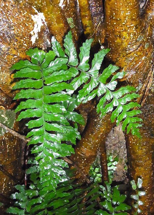 12月に訪れた時は雨、日本では与那国島にしか生育していない絶滅危惧種である珍しいシダだったが、被写体の表面が光り、あまりいい写真が撮れなかった。